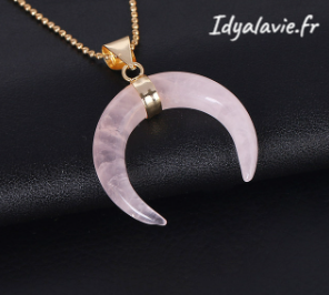 Pendentif en pierre naturelle de Quartz Rose en forme de lune.