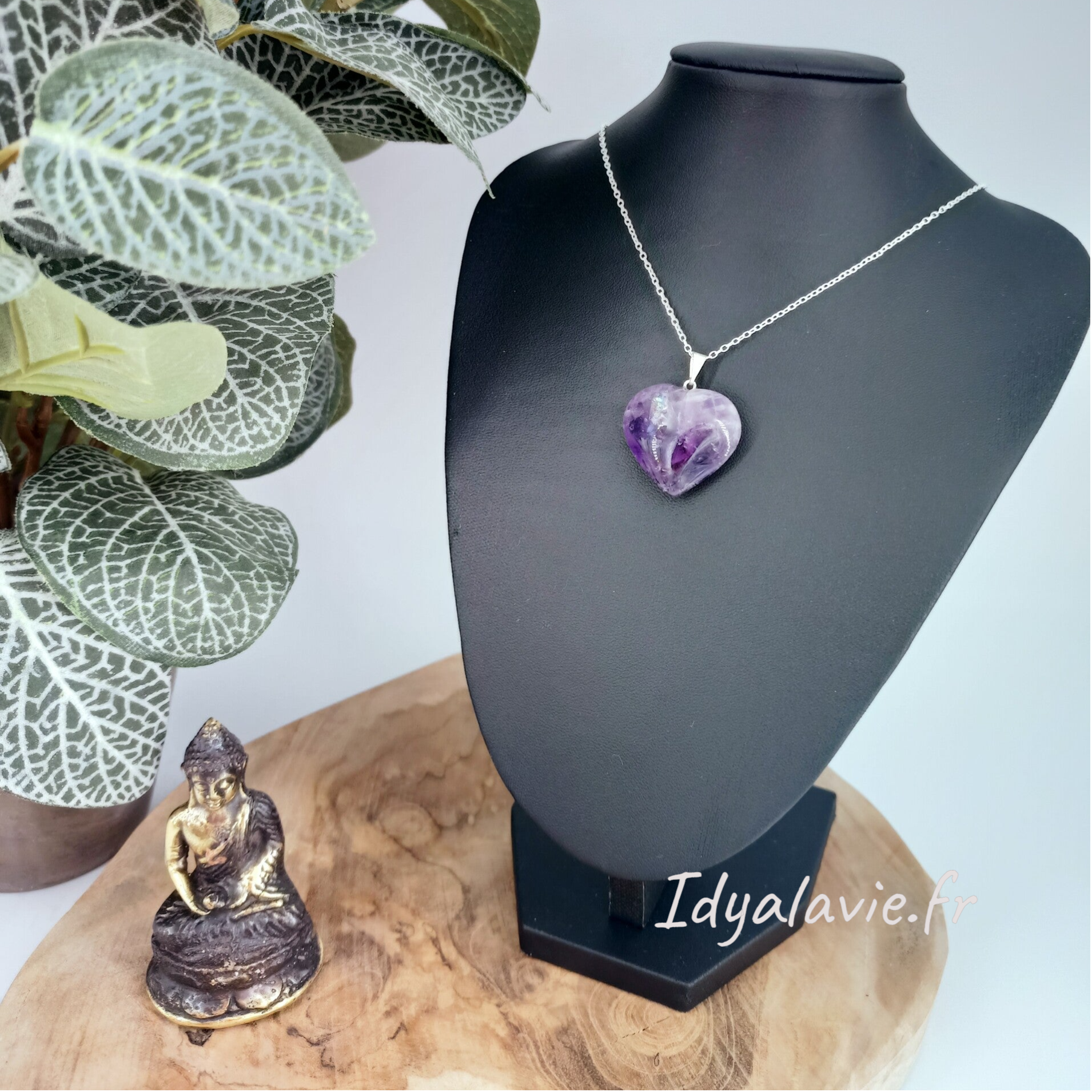 Pendentif en pierre naturelle d'Améthyste avec bélière finition argentée.