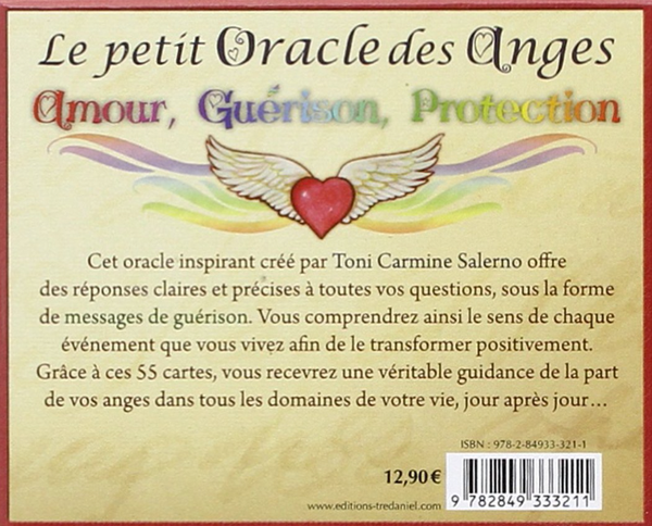 Cet oracle inspirant de 55 cartes d'enseignement créé par Toni Carmine Salerno vous offre des réponses claires et précises pour éclairer votre chemin de vie. Selon votre préoccupation du moment, choisissez l’une des cartes d'enseignement à l’intuition et découvrez le conseil de vos anges pour prendre la meilleure décision.