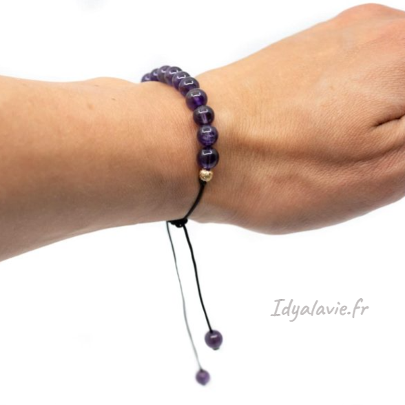Un beau bracelet réglable avec des perles d’Améthyste d’environ 6 mm