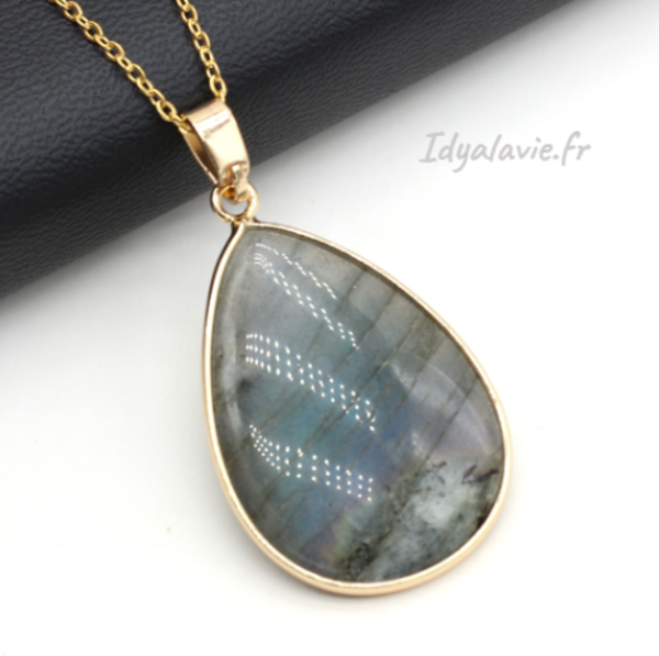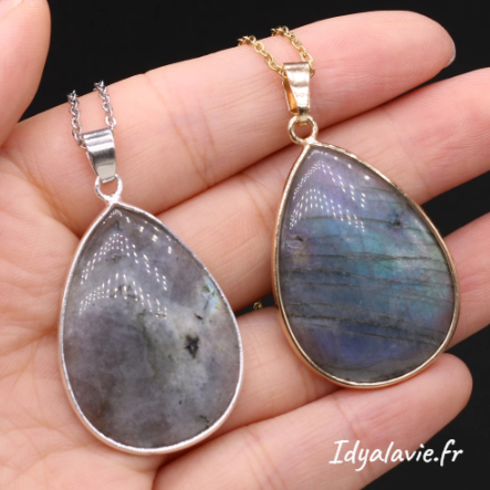 Très beau pendentif goutte en pierre naturelle de Labradorite.