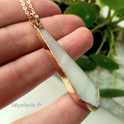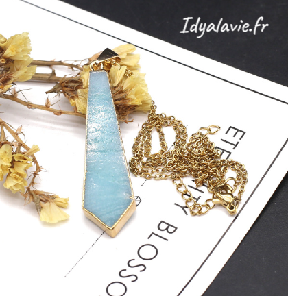 Un pendentif original en pierre naturelle d'Amazonite montée sur sertissage finition dorée.