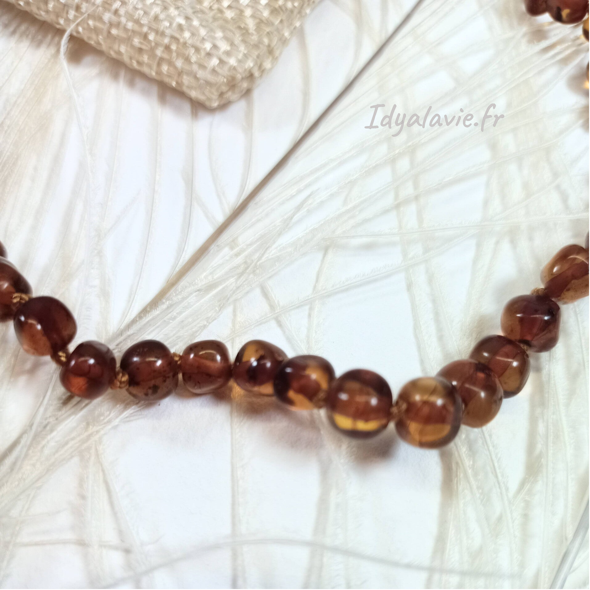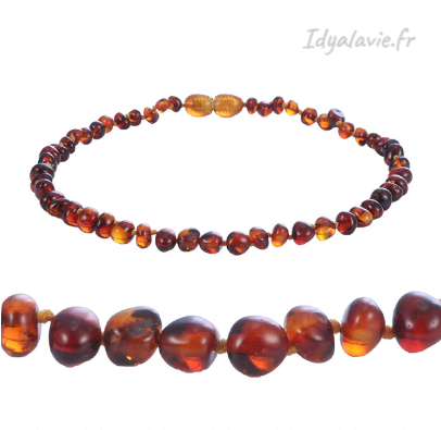 Collier pour bébé en véritable Ambre de la Baltique, résine fossile de plus de 45 millions d'années aux nombreuses vertus.