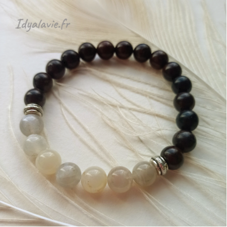 Bracelet Pierre de Lune et bois d'ébène