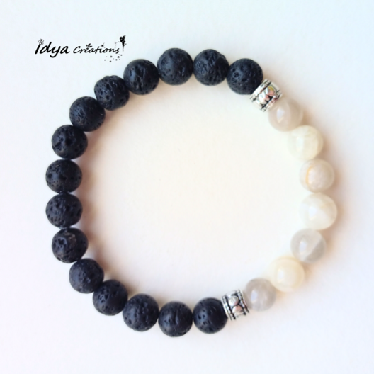 Une composition originale de Idya Créations pour ce bracelet extensible composé de pierres naturelles en perles de 8 mm. Apprêts métal finition dorée.