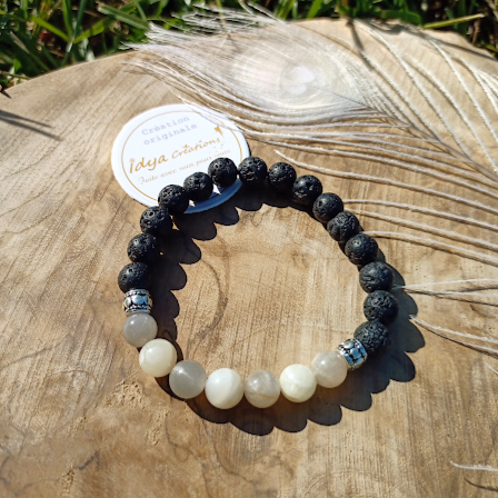 - Pierre de lune: féminité, intuition, fluidité et sensibilité communicative, reliance aux dimensions subtiles.