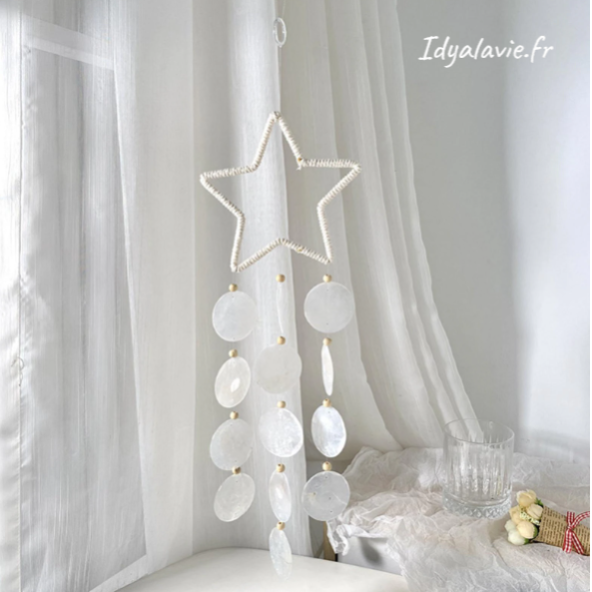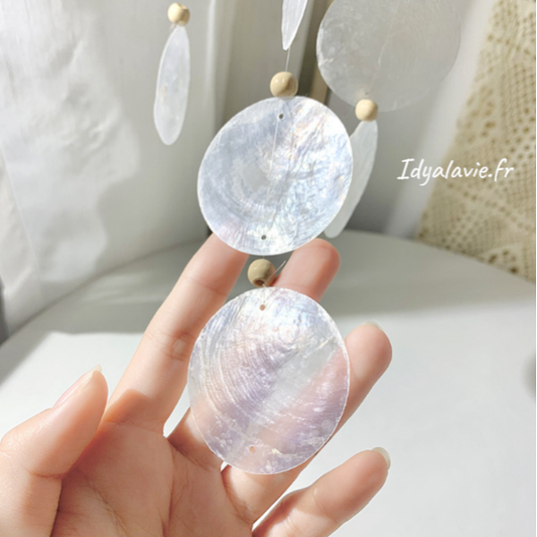 Réalisation artisanale faite de nacre de coquillages Capiz montés sur un décor de lune ou d'étoile au choix.