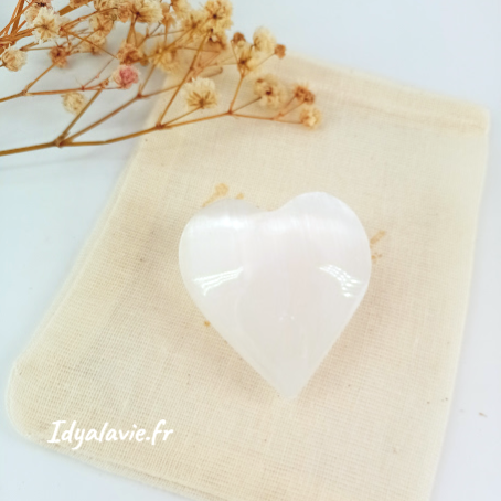 - 1 petit coeur en pierre de sélénite pour vous apaiser, vous détendre tout en vous redonnant de l'énergie en douceur.