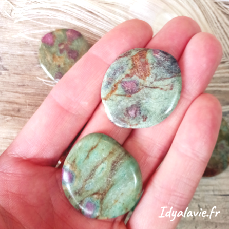 Rubis sur Fuchsite roulée plate