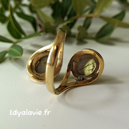 Bague en laiton avec 2 pierres de Labradorite serties qualité AA.