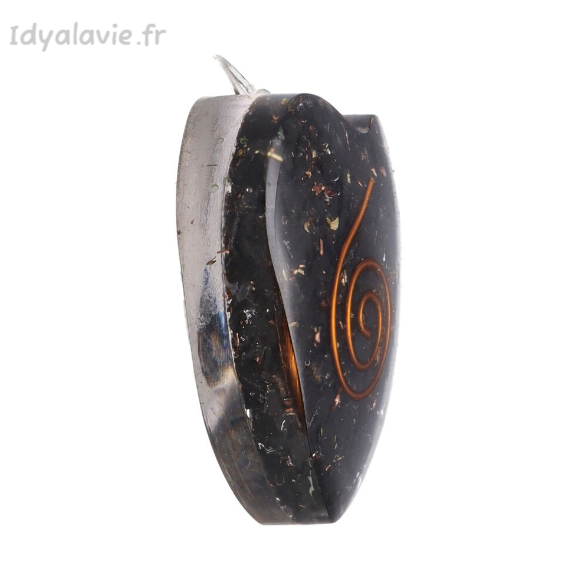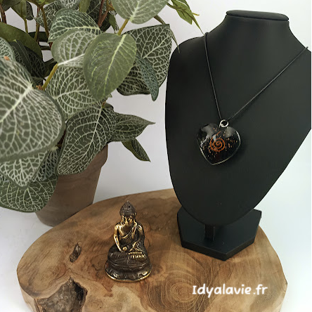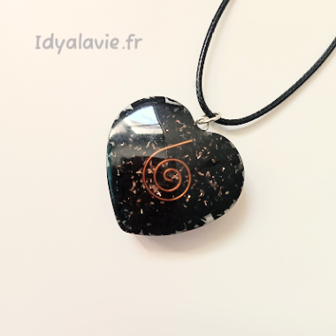 Pendentif en coeur composé de pierres naturelles de shungite de Carélie avec une spirale en cuivre.