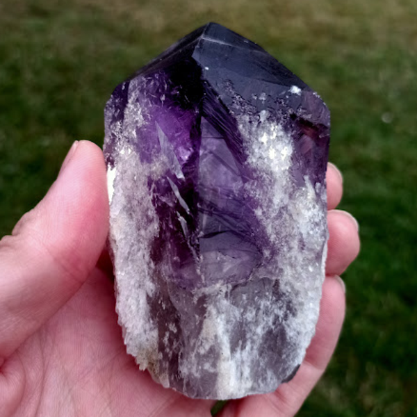 Cristal brut en pointe dont la forme naturelle a la particularité de concentrer l'énergie vers le haut.