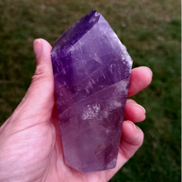Cristal brut en pointe dont la forme naturelle a la particularité de concentrer l'énergie vers le haut.