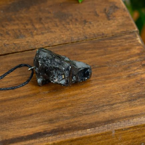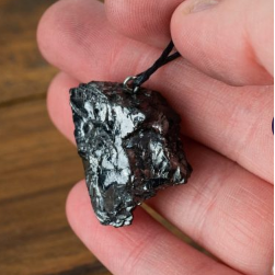Pendentif en pierre naturelle de shungite de Carélie brute qualité argent extra.