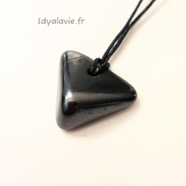 Pendentif en pierre naturelle de shungite de Carélie roulée polie percée.