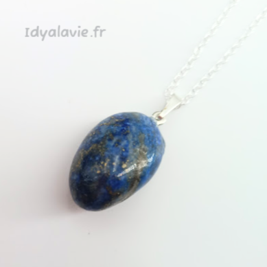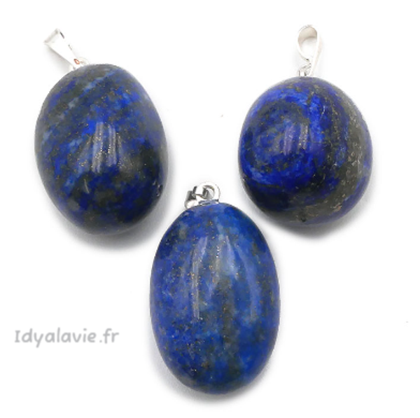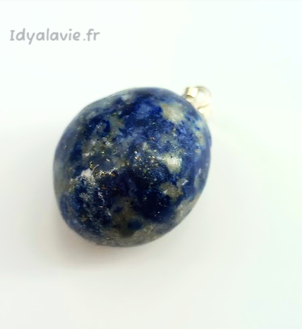 Pendentif en pierre naturelle de Lapis Lazuli roulée avec bélière finition argentée.