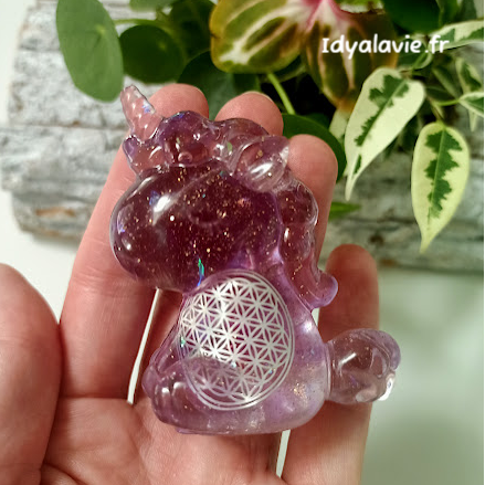 Une création originale de Valienergies*pleine de féérie pour cette orgonite enchantée en forme de licorne spécifiquement pour les enfants.