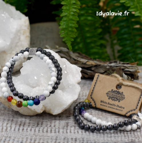 Bracelet double Hématite/Howlite 7 chakras