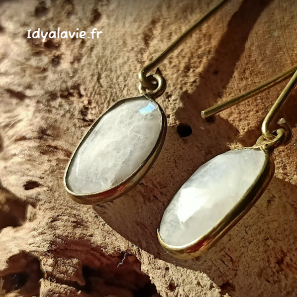 Boucles d'oreilles Pierre de lune laiton