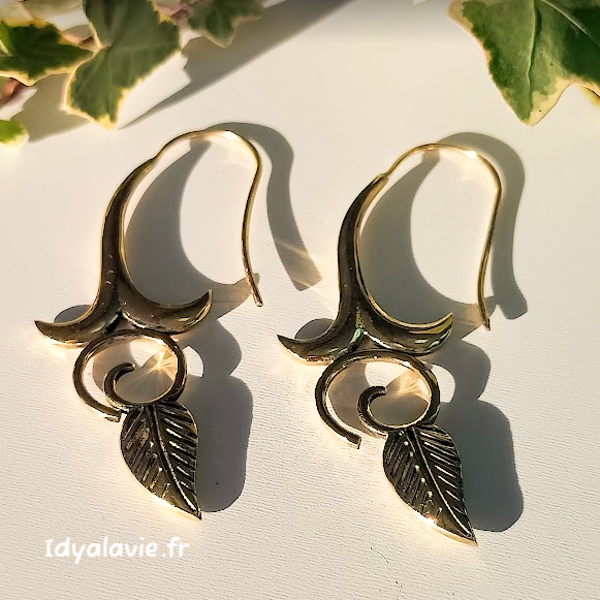 Boucles d'oreilles romantiques et distinguées d'inspiration végétale en forme de feuilles et volutes.