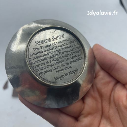Set d'encens haut de gamme de cordes tressées avec support en métal gravé finition argentée avec le décor Fleur de Vie: élévation de la spiritualité