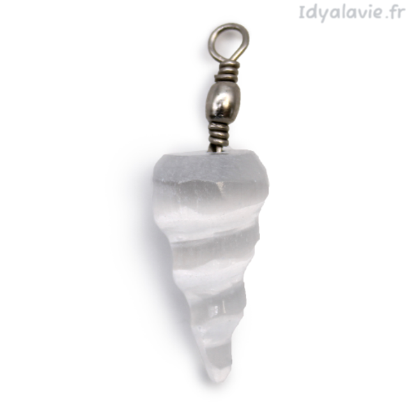Pendentif en pierre naturelle de Sélénite en forme de spirale.