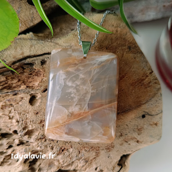 Rayonnant pendentif en pierre naturelle de Pierre de lune orangée grise avec bélière finition argentée. Qualité AA