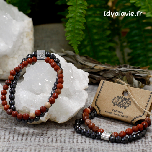 - Jaspe rouge: réalisme, ancrage. Entrain, confiance, force et vitalité. Résistance et convalescence. Avoir les pieds sur terre. Connexion au corps.