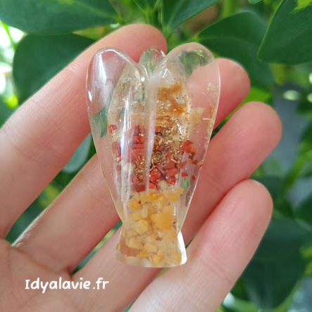 Petite figurine d'ange en orgonite composée de pierres naturelles.