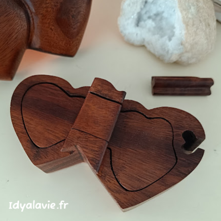 Une boîte à secrets très originale en forme de coeur conçue sur le principe d'un puzzle.
