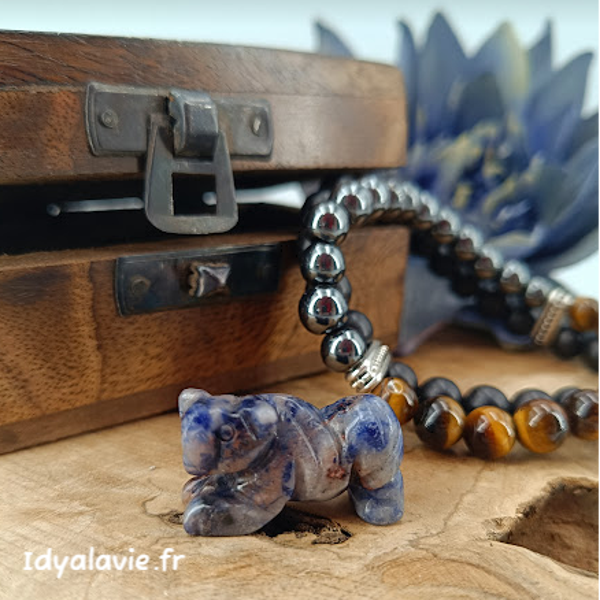 - 1 mini figurine en pierre au choix: tigre en sodalite ou Bouddha en labradorite