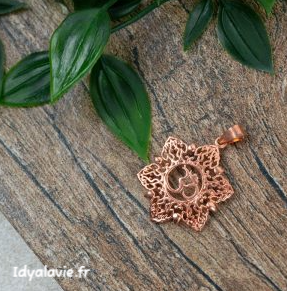 Pendentif vibrant et délicat formant un mandala avec, en son centre le symbole sacré OM (AUM).