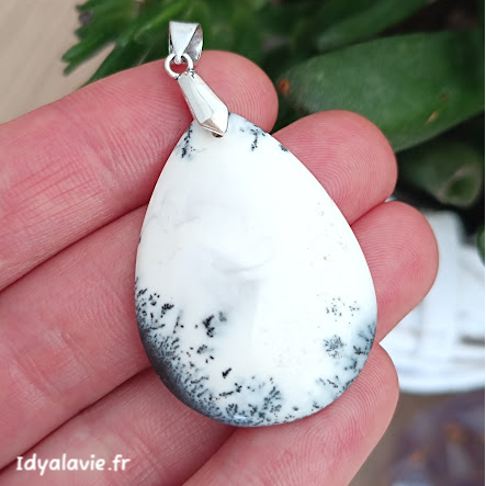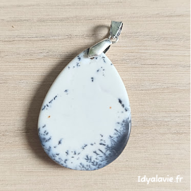Pendentif en pierre naturelle d'agate dentritique en forme de goutte.