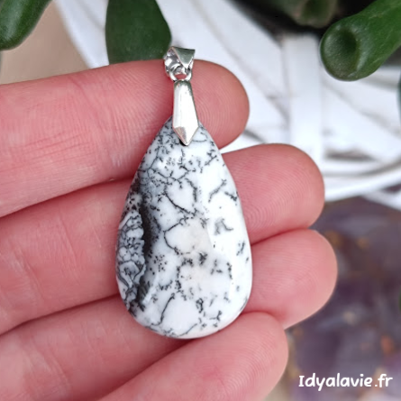 Pendentif en pierre naturelle d'agate dentritique en forme de goutte.