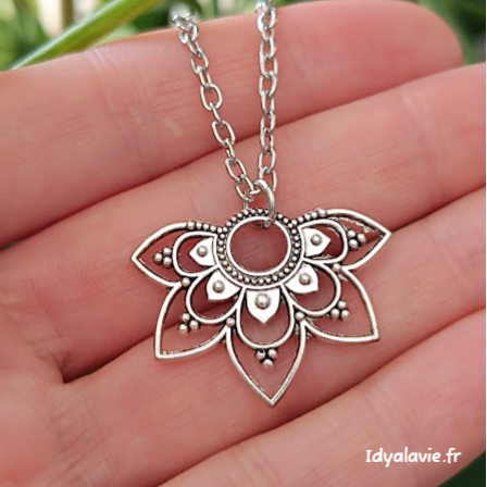 Pendentif fantaisie aux délicates lignes formant un mandala inspiré de la fleur de lotus.
