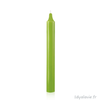 Bougie verte pré teintée dans la masse. 22 cm de long avec une durée de combustion d'environ 8 heures.