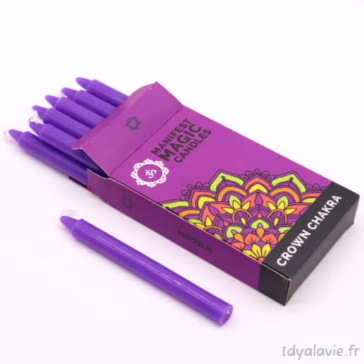 Laisser l'équilibre et l'enchantement opérer avec ces petites bougies violettes Manifest Magiques. Boîte de 12 bougies en cire de soja. SAGESSE.