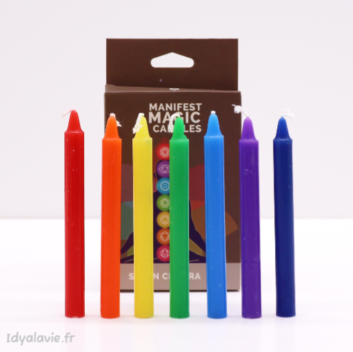 Laisser l'équilibre et l'enchantement opérer avec ce set de petites bougies multicolores assorties aux chakras Manifest Magiques. Boîte de 7 bougies en cire de soja.