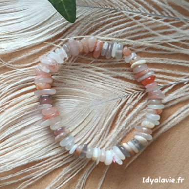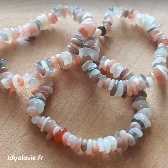 Bracelet en chips de pierre de lune multicolore.