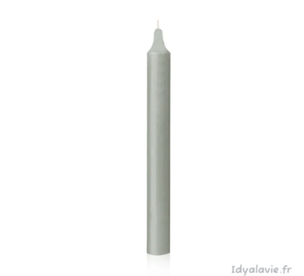 Bougie grise teintée dans la masse. 22 cm de long avec une durée de combustion d'environ 8 heures.