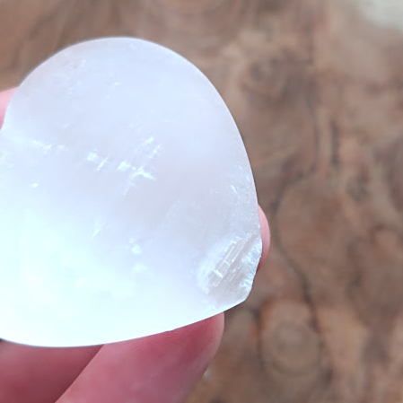 Petit coeur dont on a plaisir à tenir dans la main et facile à glisser dans la poche pour profiter des douces vertus de la sélénite. Pierre généreuse, idéale dans l'apprentissage de la méditation.