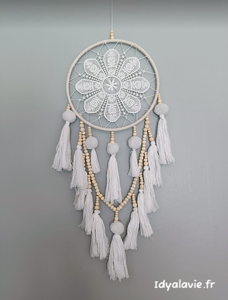 Beaucoup de douceur pour ce très bel Attrape-rêve aussi décoratif qu'enveloppant et qui viendra vous assurer de douces nuits.