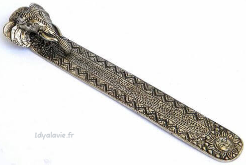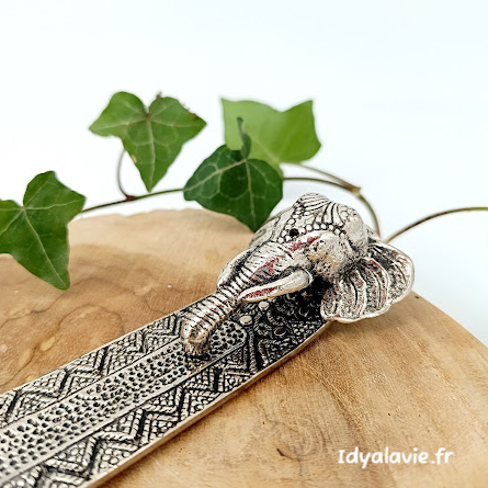 Ce porte-encens en métal avec une tête d'éléphant est à la fois un objet spirituel et décoratif, qui allie symbolisme et fonctionnalité. Il ajoute une touche d'élégance à n’importe quelle pièce, tout en servant de support pratique pour la combustion d’encens, évoquant la sagesse et la protection à travers la figure de l’éléphant.