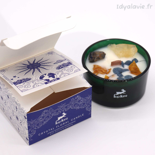 Le parfum vivifiant d'agrumes remplit l'air, remonte l'humeur et crée une atmosphère ensoleillée. Complétée par les pierres naturelle citrine et sodalite, cette bougie rayonne de positivité.