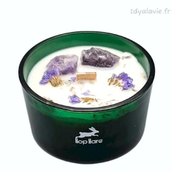 Rehaussée par la pierre d' améthyste, cette bougie invite l'équilibre et l'harmonie dans votre espace. L'améthyste, appréciée pour ses propriétés anti-stress, favorise une atmosphère paisible, ce qui en fait la compagne idéale pour les moments de détente.