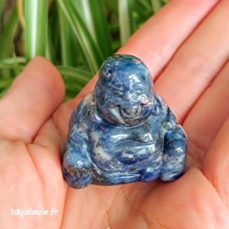 Petite figurine du Bouddha rieur en pierre naturelle de sodalite.
