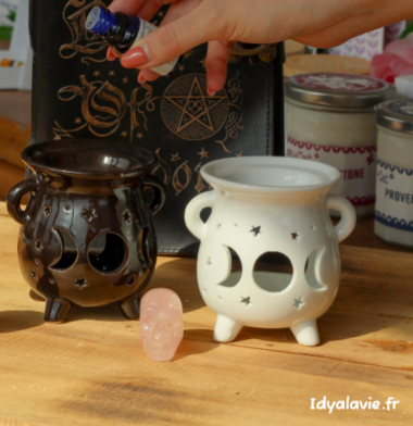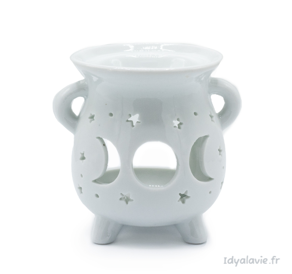 Un brûleur à huile bien original en forme de chaudron, fabriqué en céramique blanche qui lui donne une allure élégante et mystique.