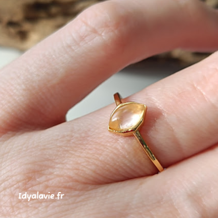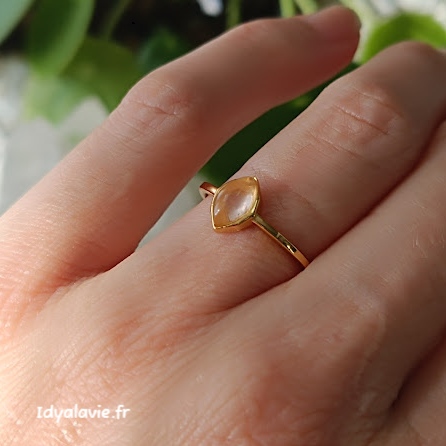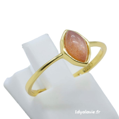 Bague en Argent 925 plaquée Or sertie d'une Pierre de Soleil qualité extra.