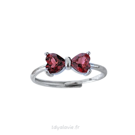 Bague en cuivre blanc Double cœurs avec 2 pierres de grenat rouge.