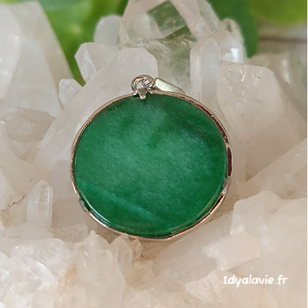 Pierre d'aventurine enfermée dans un pendentif Fleur de vie.